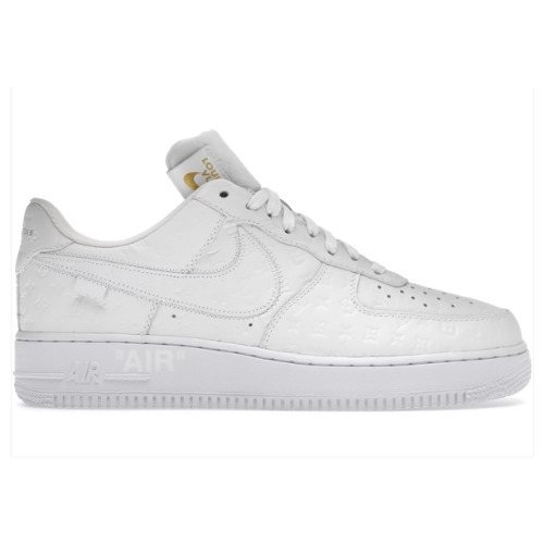 El Louis Vuitton Nike Air Force 1 Low by Virgil Abloh White es una reinterpretación lujosa del clásico Air Force 1 bajo la visión de Virgil Abloh. El modelo adopta un diseño “White on White”, con piel estampada con el monograma LV, acompañado de detalles en dorado de la marca Louis Vuitton