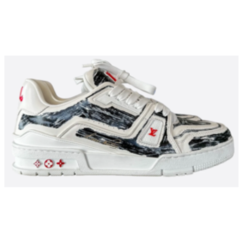 El Louis Vuitton Trainer “Colored in White Black” (1ABLWE) es una reinterpretación moderna del icónico modelo LV Trainer, diseñado originalmente por Virgil Abloh. Esta versión combina elegancia y contraste, con una base en blanco puro y detalles en negro profundo, creando una estética limpia y versátil.