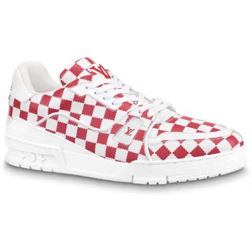 Tenis Trainer Red / White Damier de Louis Vuitton: patrón Damier rojo y blanco con diseño deportivo-lujo en la silueta Trainer