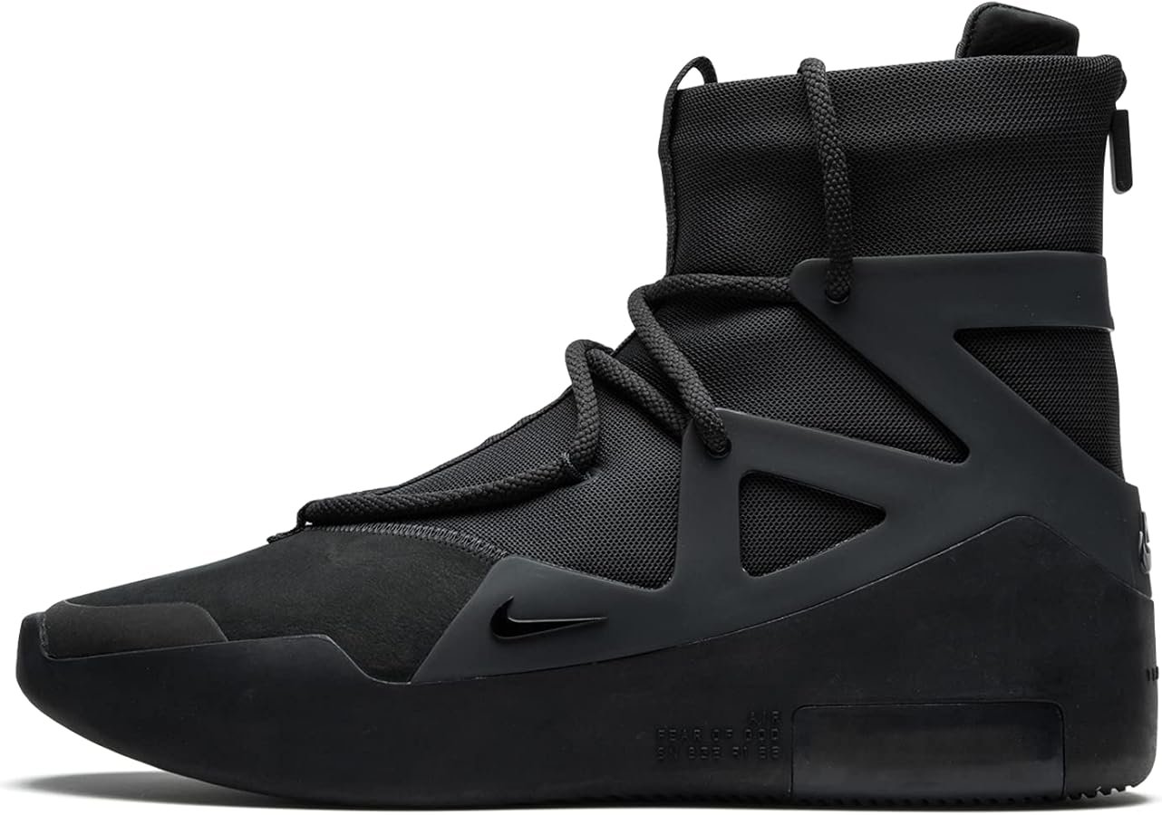 El Nike Air Fear of God 1 “Triple Black” es esencial para los fanáticos de la exclusiva marca de moda de Jerry Lorenzo, Fear of God, y para aquellos que disfrutan de la estética de mal humor todo negro. Lorenzo se unió a una lista muy corta de no atletas que han creado sus propias siluetas bajo el paraguas de Nike cuando debutó con Air Fear of God 1 en 2017. Los aros híbridos de rendimiento y los zapatos de estilo de vida tienen una superposición de gamuza negra en la puntera, mientras que el nailon tonal adorna el cuello, el talón y el panel medio. El sistema de cordones escalonados se ve aumentado por una superposición tonal sintética en el talón. Una entresuela ahumada con la marca tonal Fear of God y Nike Air da los toques finales al aspecto sigiloso.